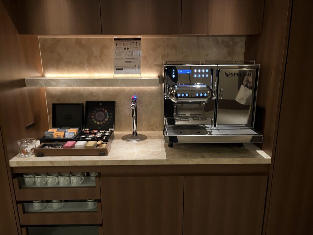 入り口にはコーヒーマシンがあり、ライブラリで飲むことができる。