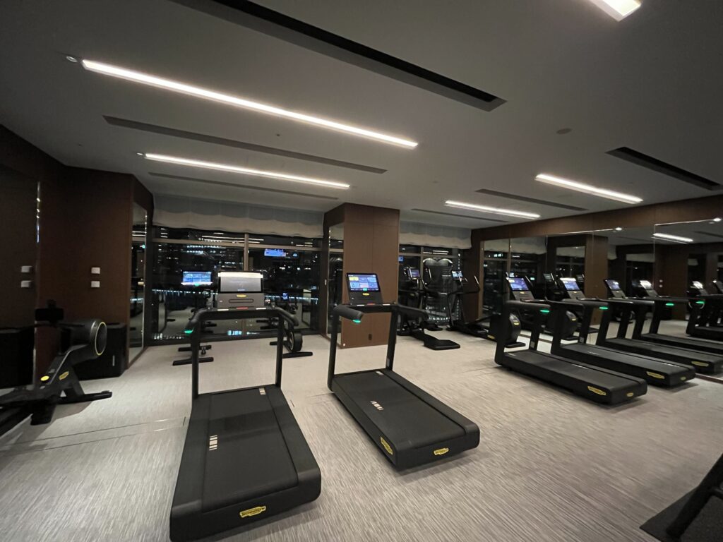 同じく30階にはフィットネスジムがある。24時間営業で、広くはないがそこそこ器具は揃っている。