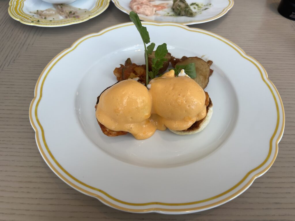 ダイヤモンド会員だと特別にロブスター入りのエッグベネディクトを注文できるという微妙に嬉しい特典があるとのことだった。せっかくなので頼んでみた。