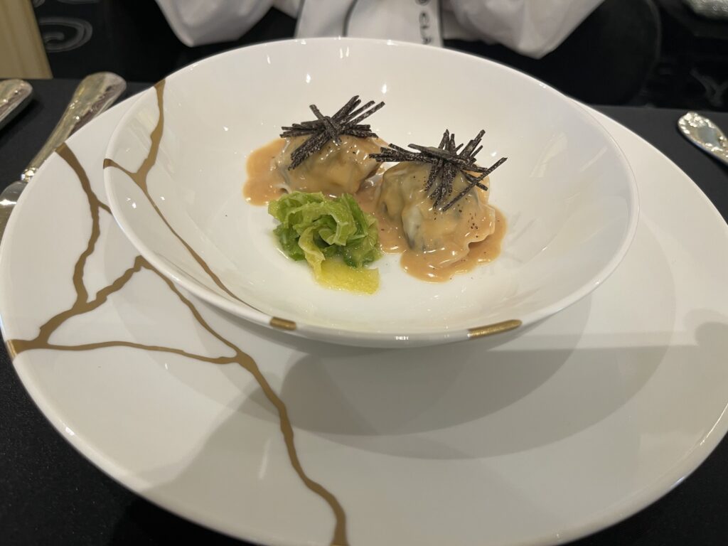 パンはロブション内で焼いた焼き立てパンがワゴンでくる。ワゴンで運ばれてきて「お好きなものをどうぞ」と言われるとめちゃテンションが上がるが食べすぎないように要注意。ここで調子に乗って食べすぎると後で詰む。
