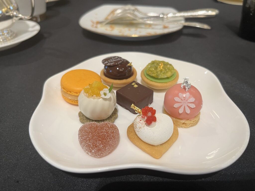 一見上品なマダムが一つ目のデザートくらいまではテンション上がってウキウキだったのがここら辺までくると逆にお腹いっぱいでテンション下がってくるのを何回かみた。