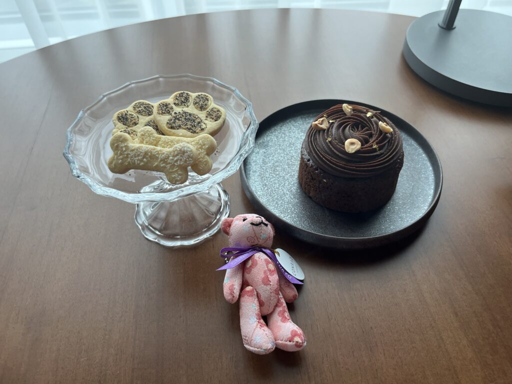 左はペットのウェルカムサービスのお菓子。食べたことはないが人間も食べれるとのこと。