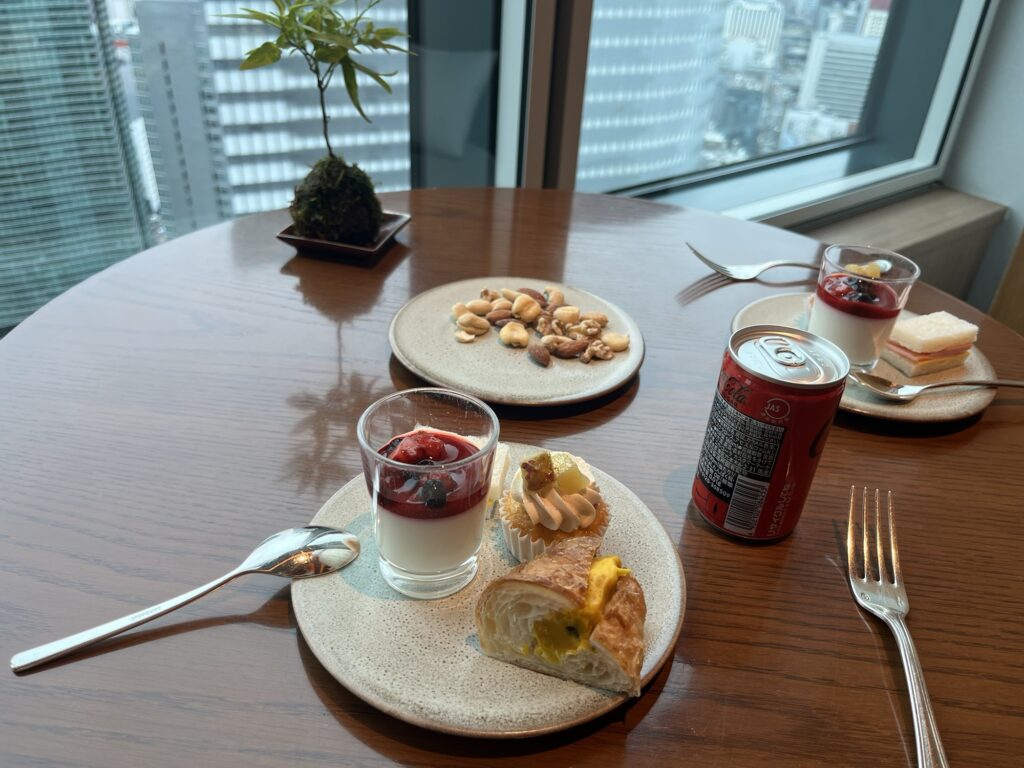 何度か行ったが結局飲み物と残骸のようなちょっとしたケーキとかしか食べれないので最近は最初からお金を出して28階のカフェラウンジや、インルームでの食事を楽しむようにしている。