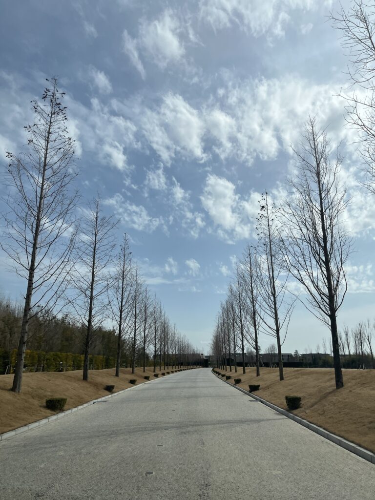 ゲートの先はまっすぐな道がしばらく続き、その先にホテルがある。贅沢な土地の使い方。