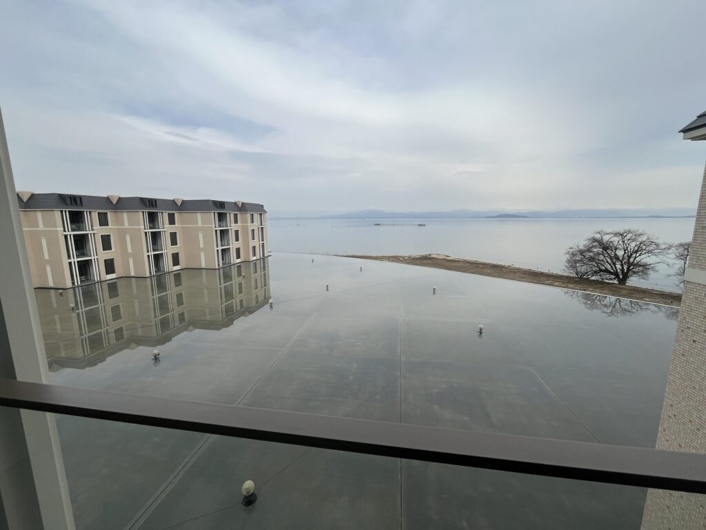 お部屋の雰囲気はベイコートと似ているものがある。ベランダからの景色は琵琶湖が見え、とても素晴らしい。