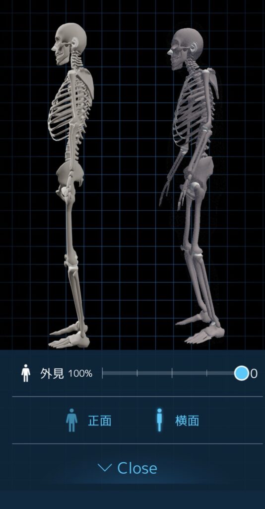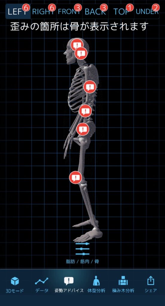 姿勢の改善ポイントも表示され、推奨される運動なども表示され、わかりやすい。