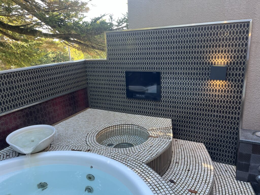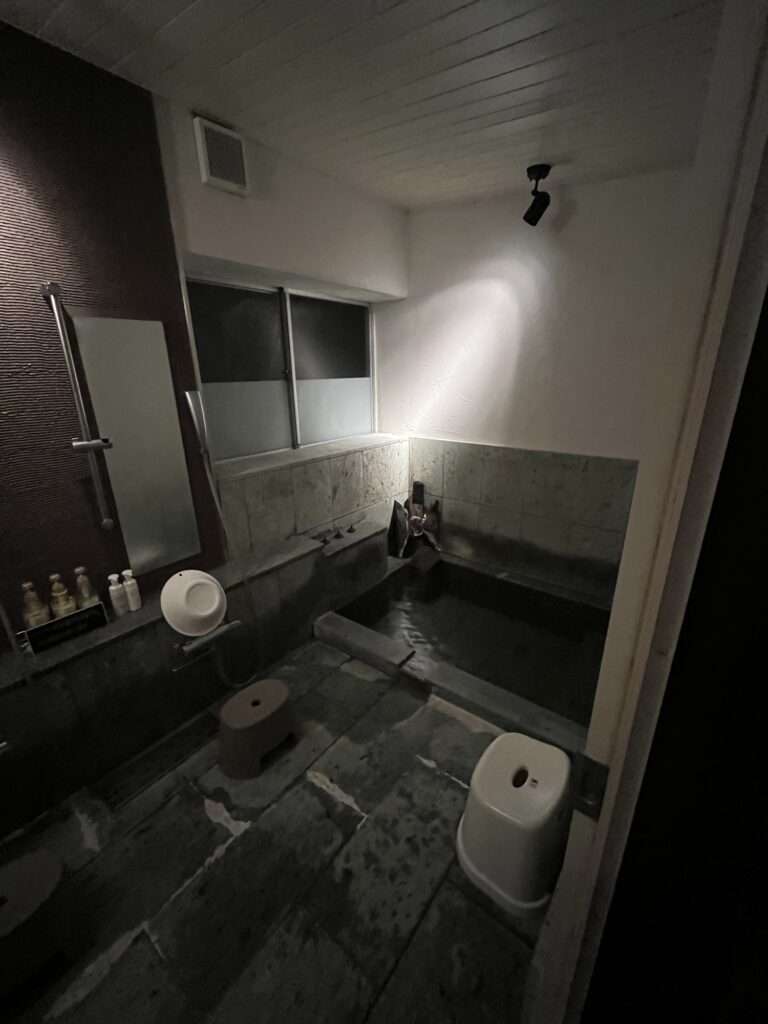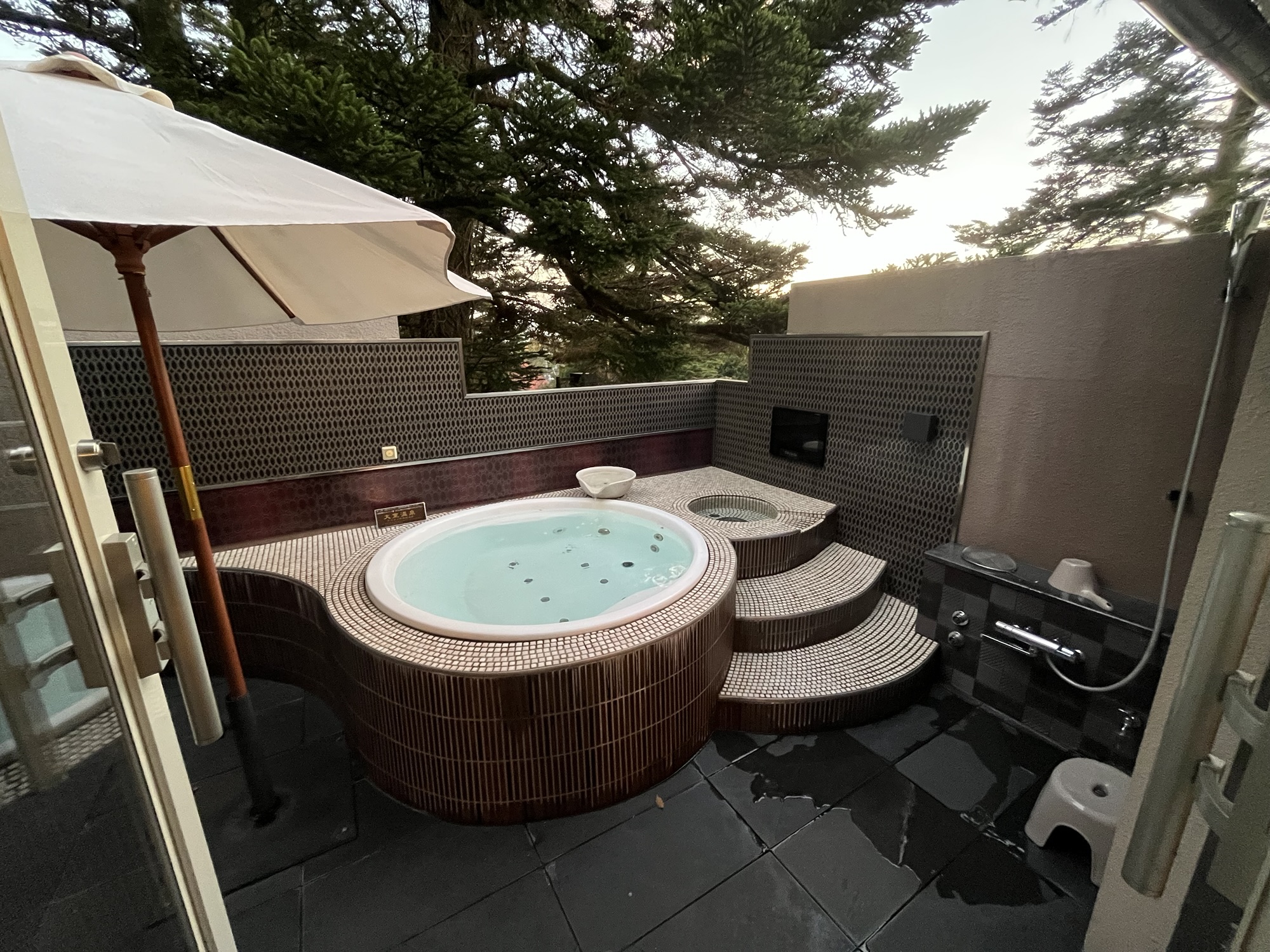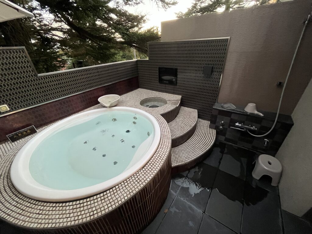 リビングから外に行け、露天風呂がある。普通のお風呂の雰囲気だが、ちゃんと温泉。