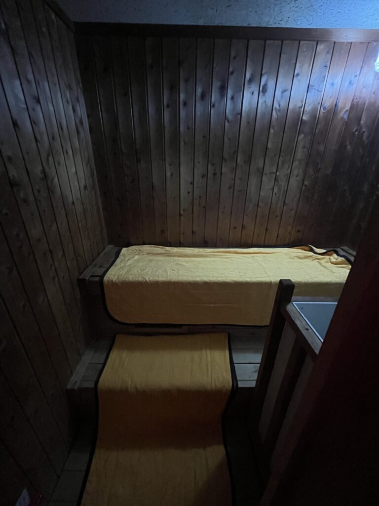 サウナは2段で1ー2人用。90度くらいで結構暑い。ただし水風呂がないため温まりすぎに注意。