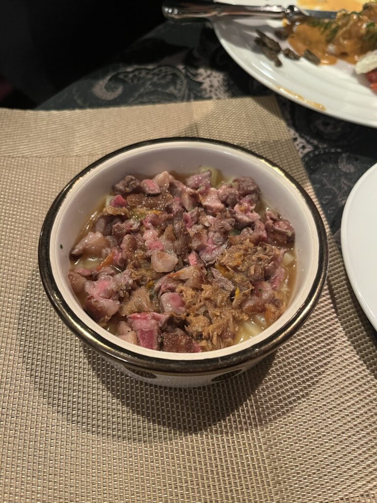 ワンちゃんのご飯もとても豪華でめちゃくちゃ美味しいんだろうなというのがワンちゃんのたべっぷりからもわかる。多分だけど人間が食べてもそこそこ美味しいと思う。