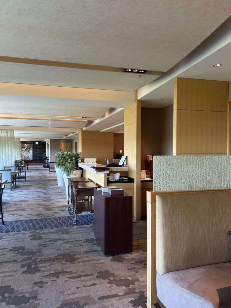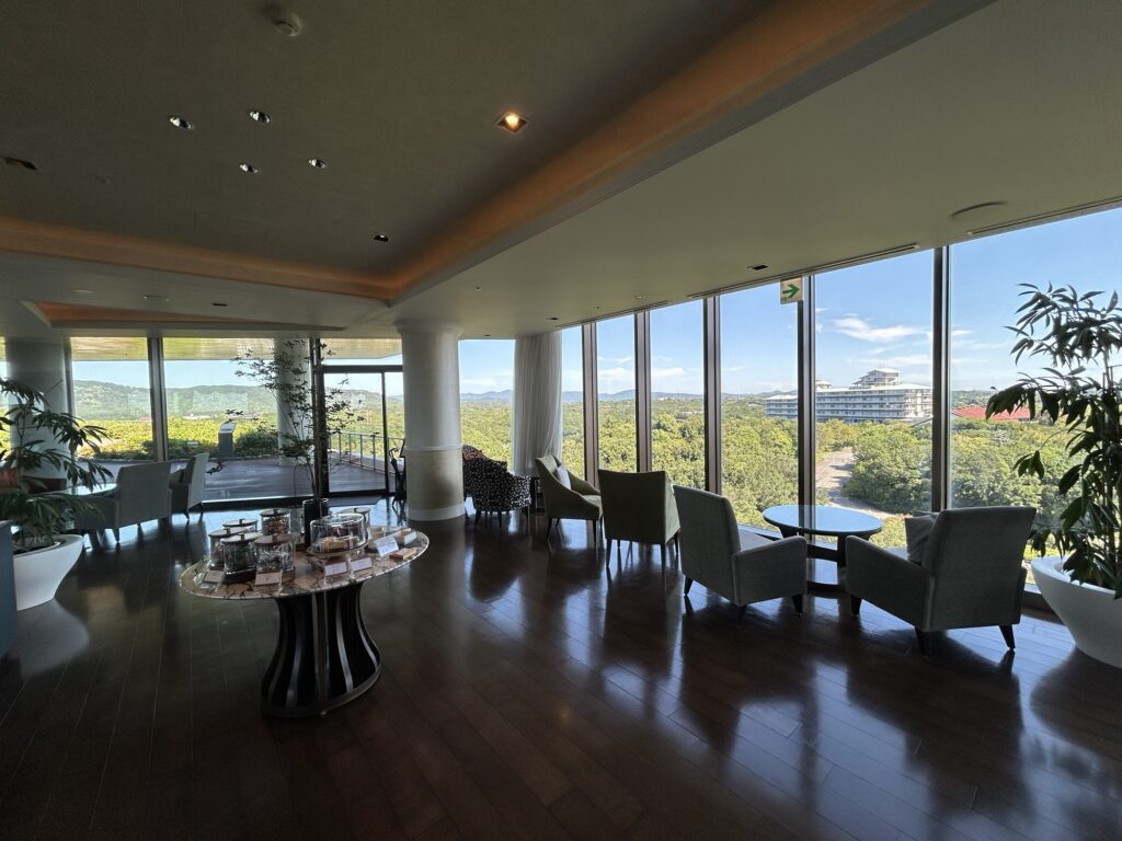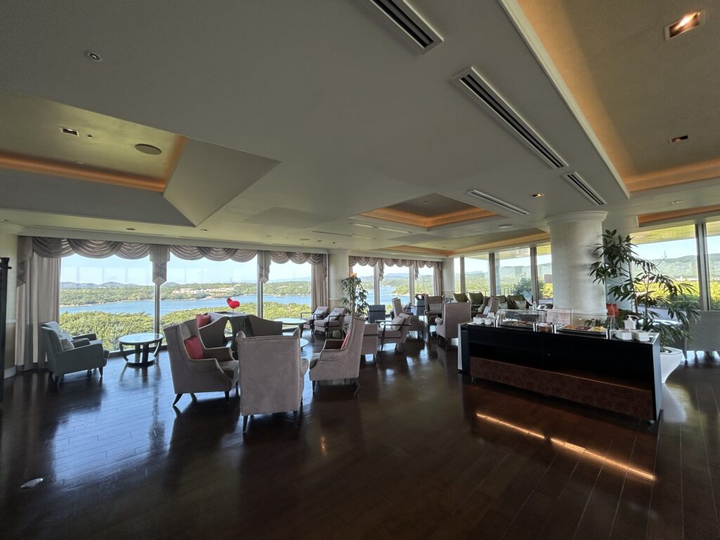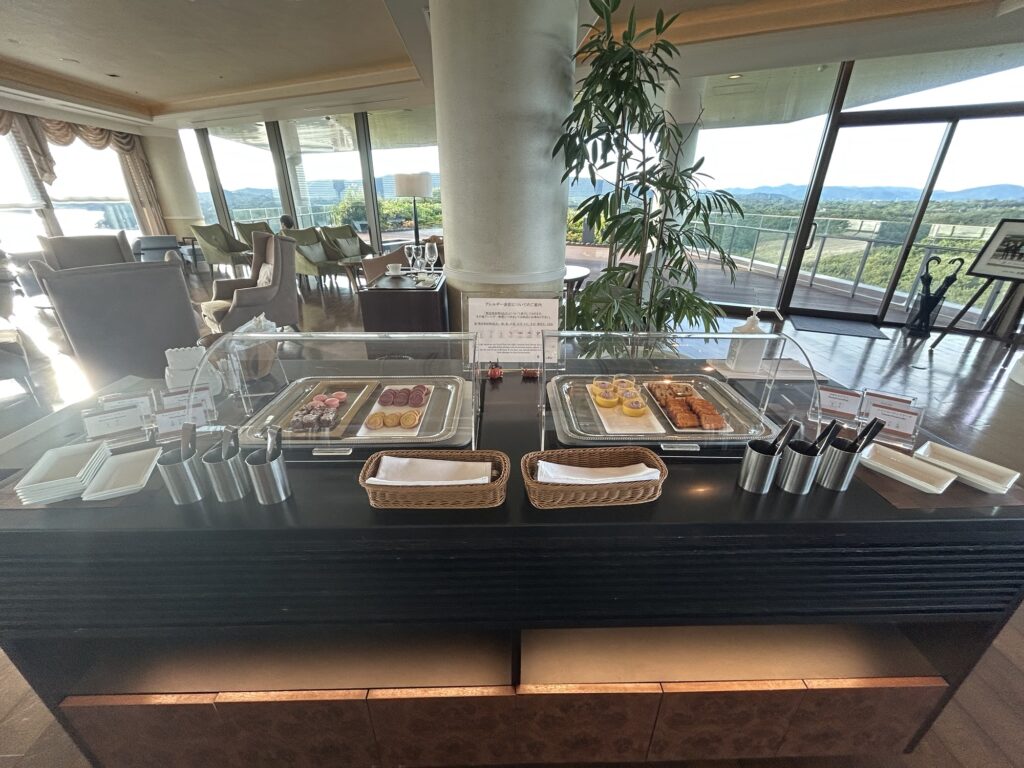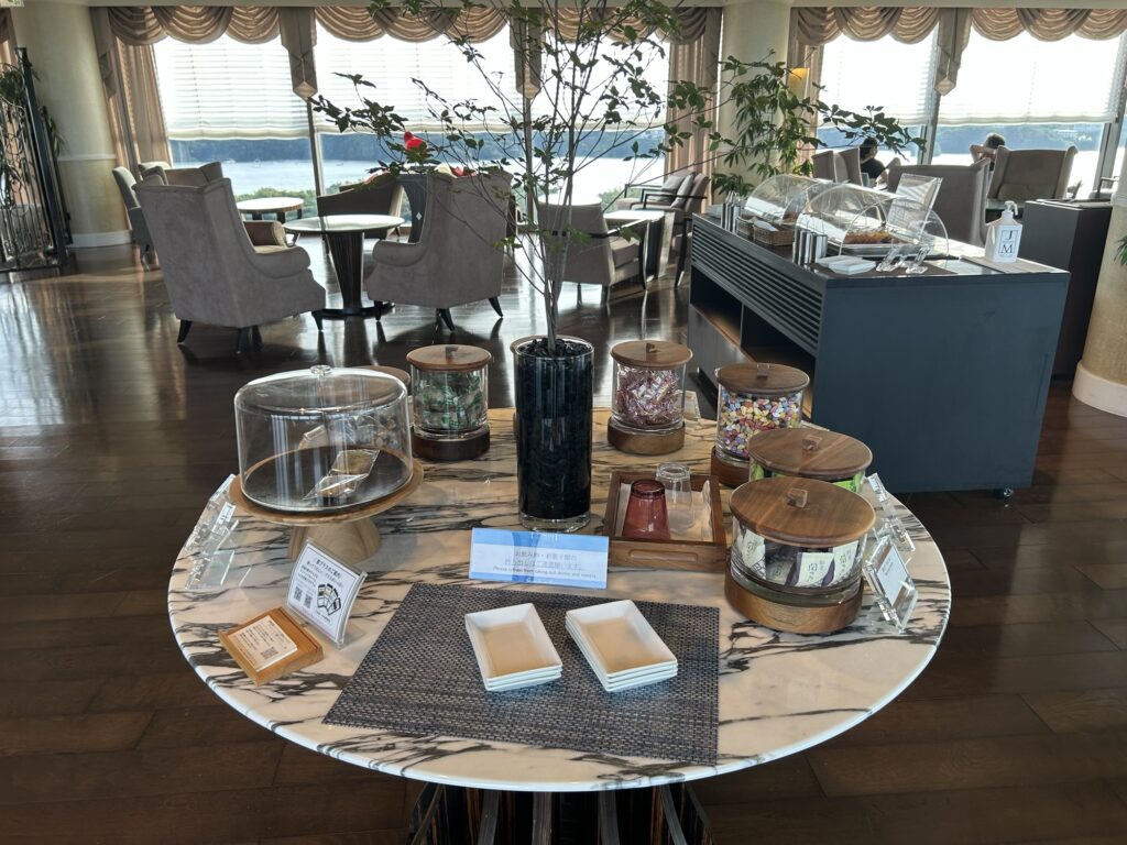 また本館(志摩観光ホテル クラシック)の2階にもラウンジがある。置いてある食べ物はスナックやチョコレートは同じ感じであるが、マカロンやケーキなどのスイーツがクラシックの方は置いてない感じだった。
