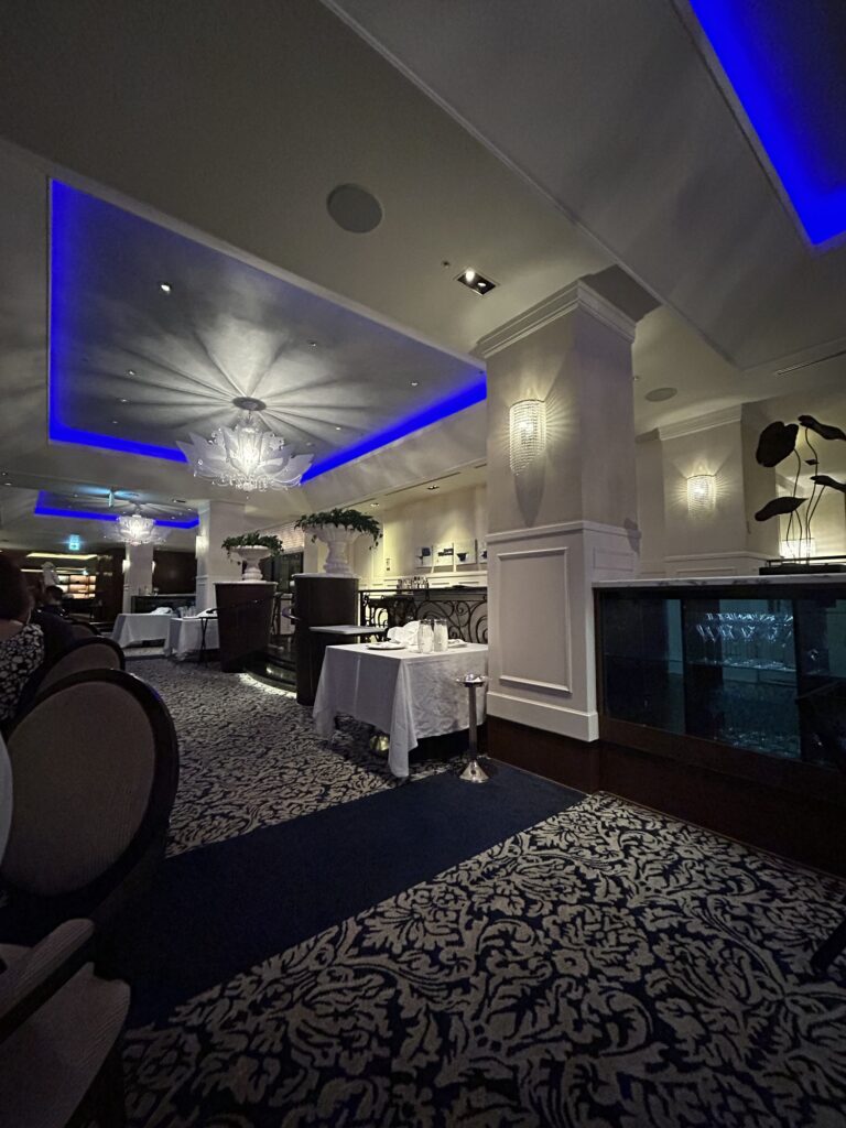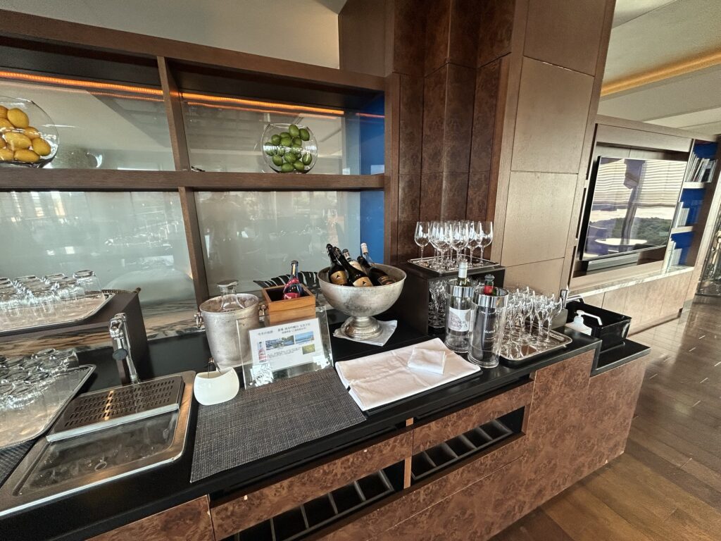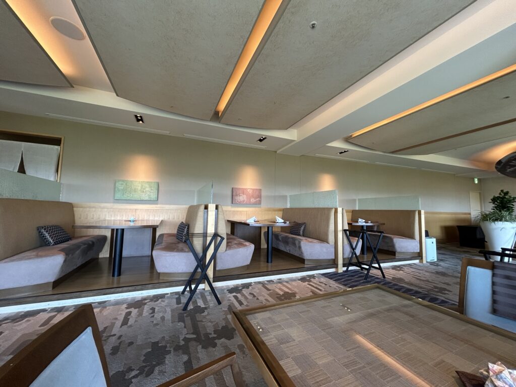 ベイスイート5階。ドレスコードあり、TシャツやサンダルNGとのことだが、Tシャツの男性はちらほらいた。
