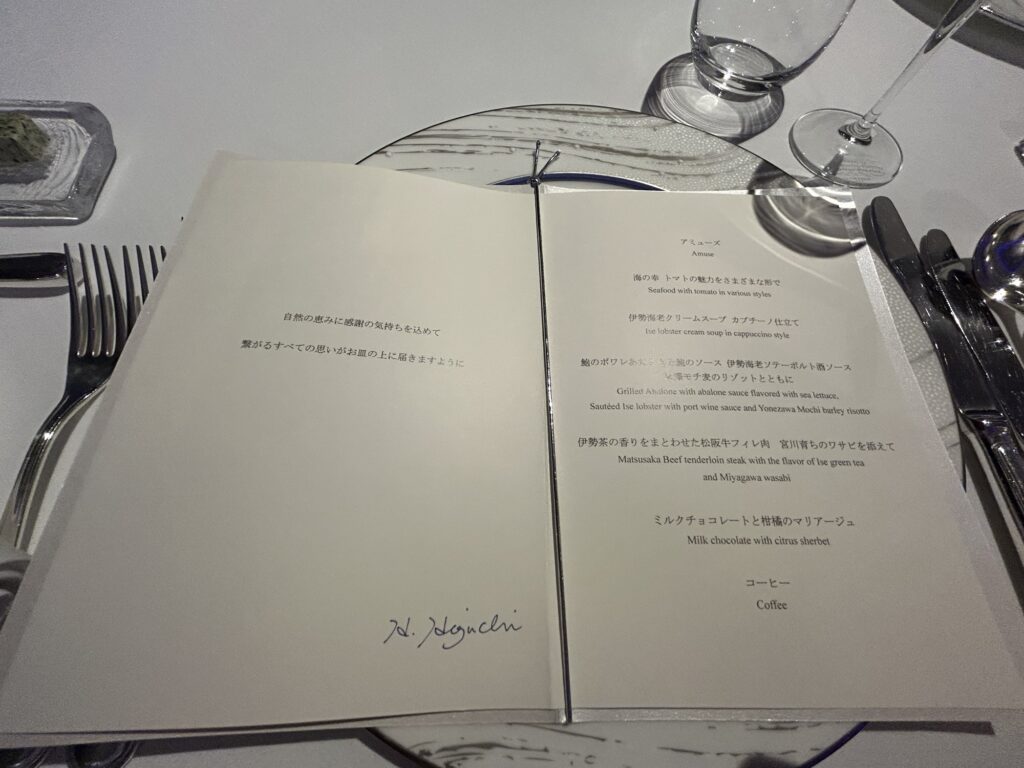 ラメールでは2016年のサミットの時に提供された食事「伊勢志摩サミット記念ディナー」のプランがある。1人5万となかなかの値段だが、これは食べておくしかないと思い、このプランを予約した。