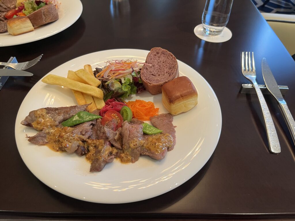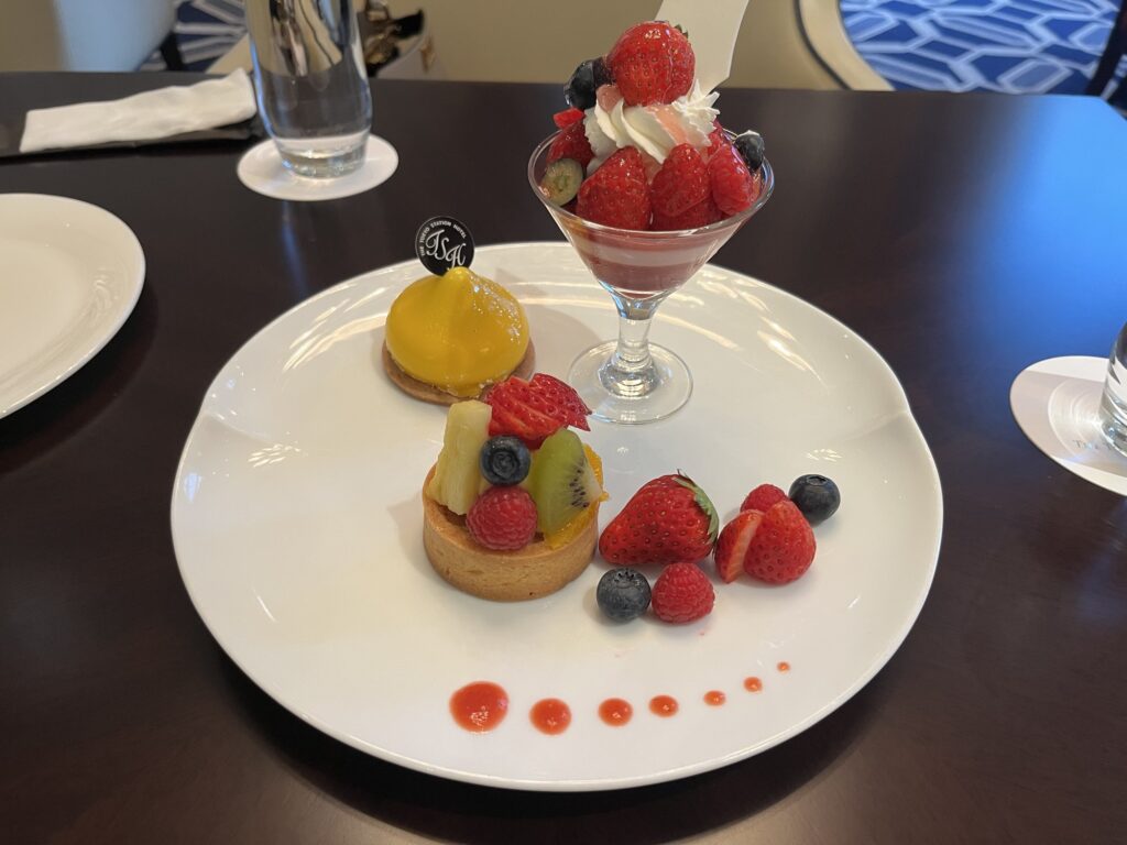 今回は昼過ぎにロビーラウンジ、夕食にフレンチの「ブラン・ルージュ」を利用した。また朝食は4階にある「アトリウム」でいただいた。