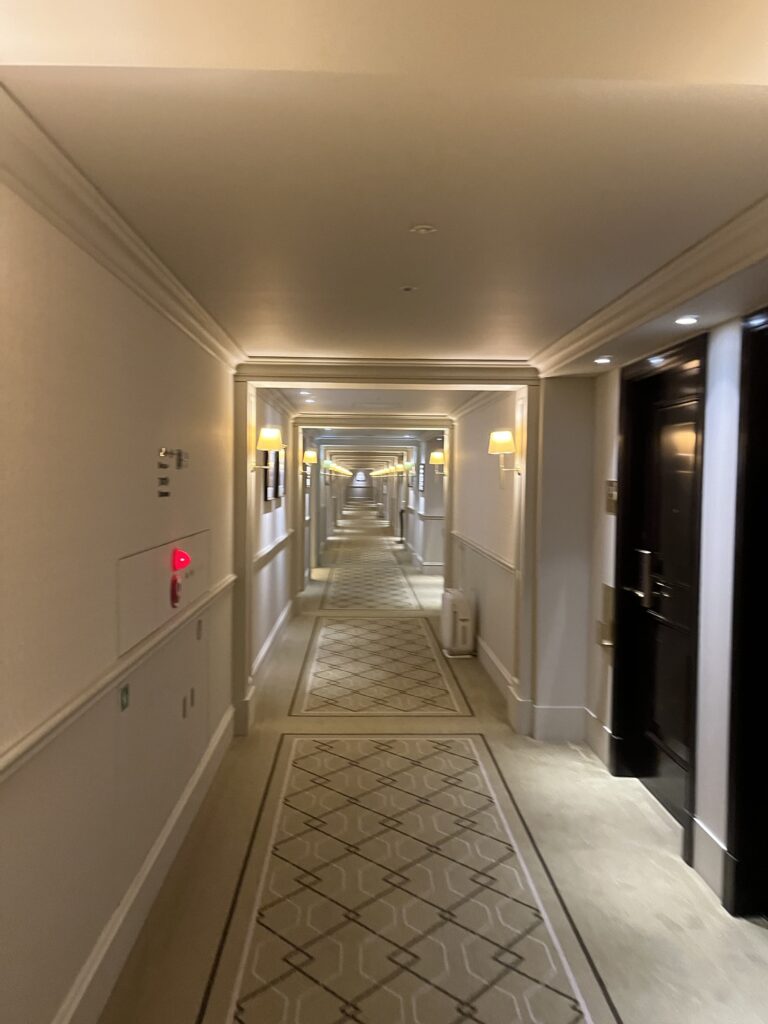 東京ステーションホテルは横長のホテルなので廊下がめちゃ長い。