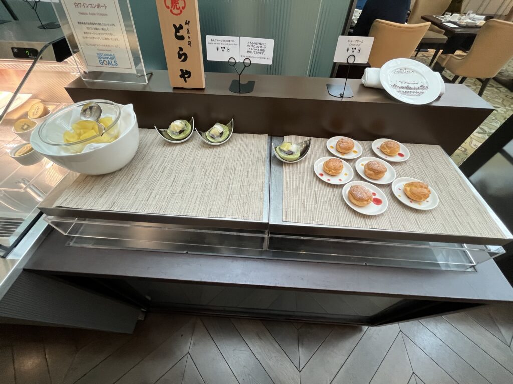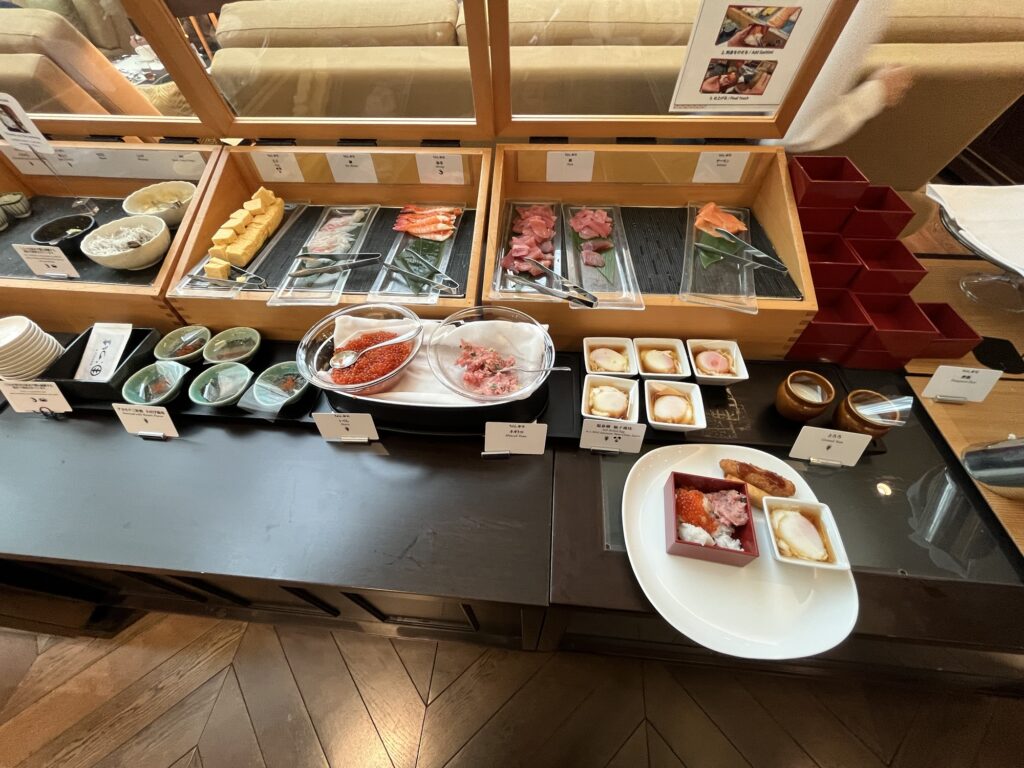ブッフェ形式で和食系と洋食系に分かれて配置されている。うなぎやちらし寿司などもあり、お米もブランド別に3種類くらいあった。海外から旅行に来た人も楽しめそう。