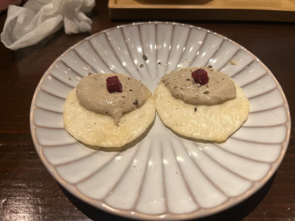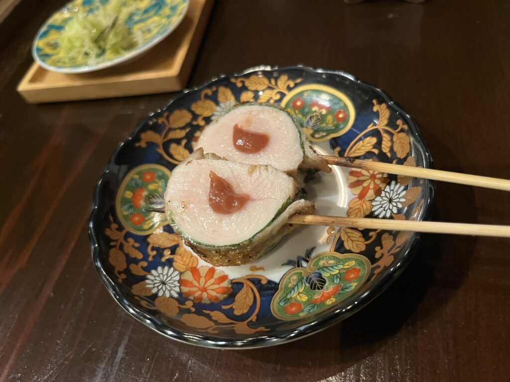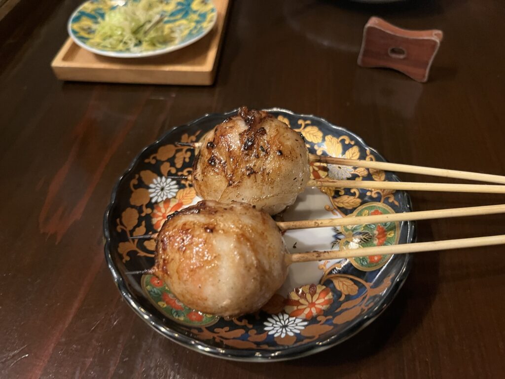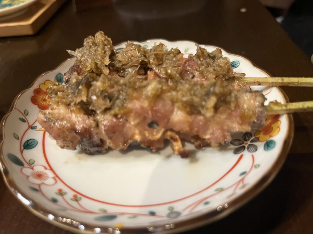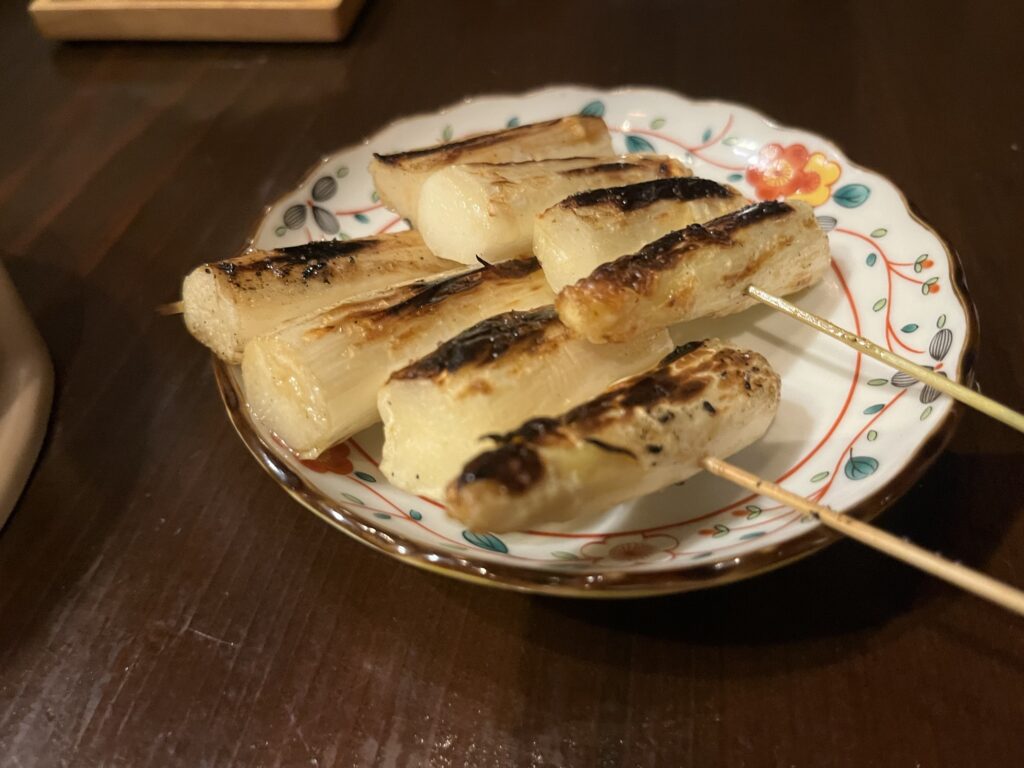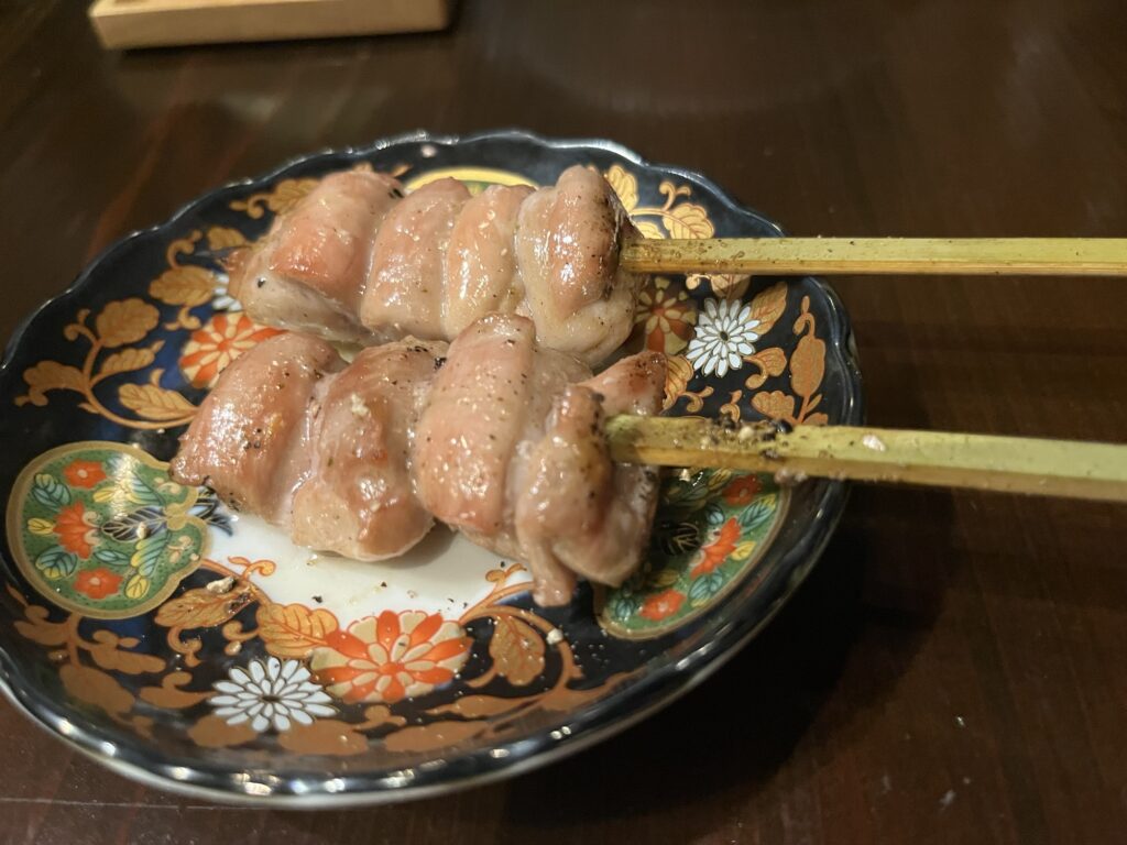 中目黒駅前という好立地ながら価格もリーズナブル。今回は串コース10本を注文。先付けと締めのご飯、デザートも付く。