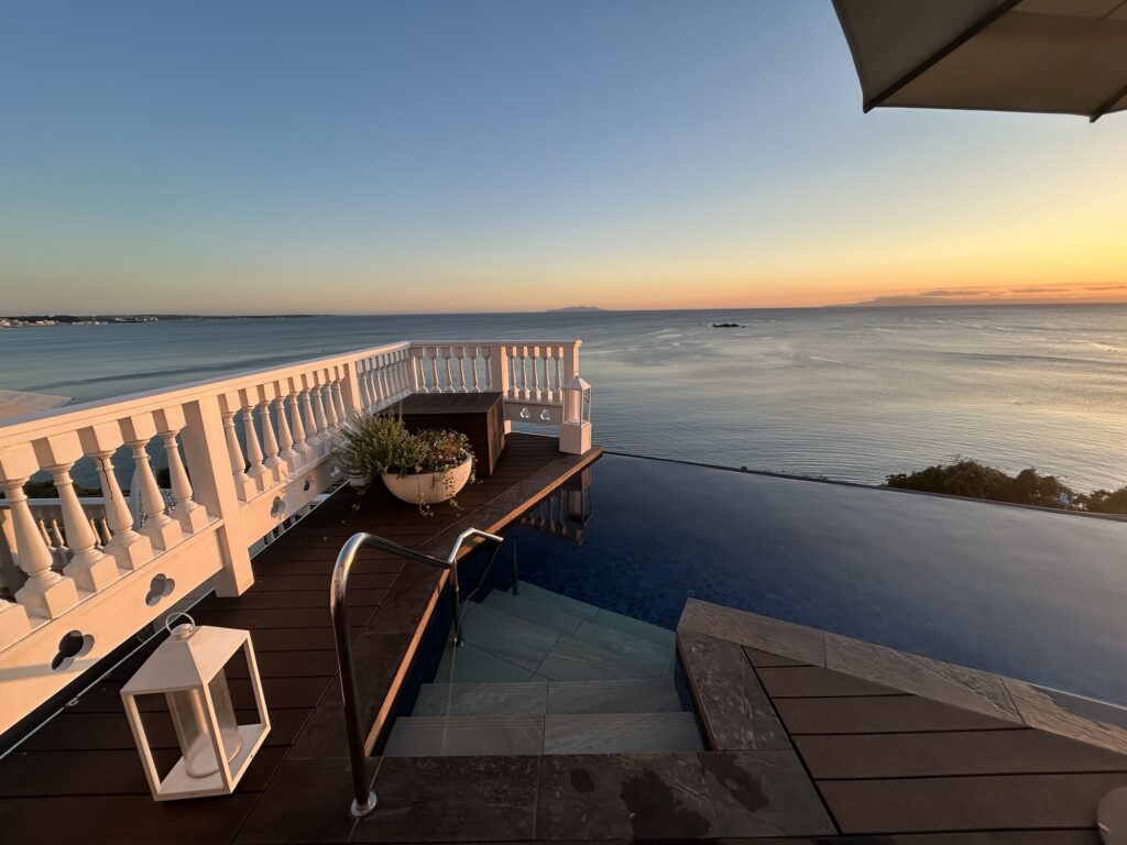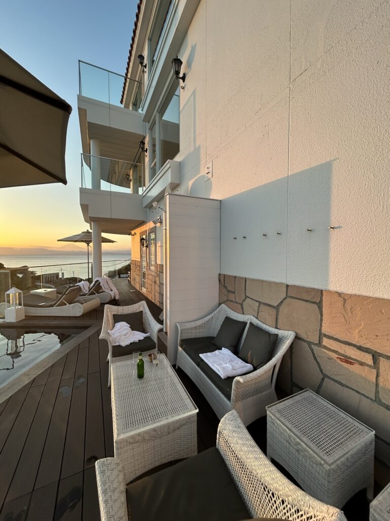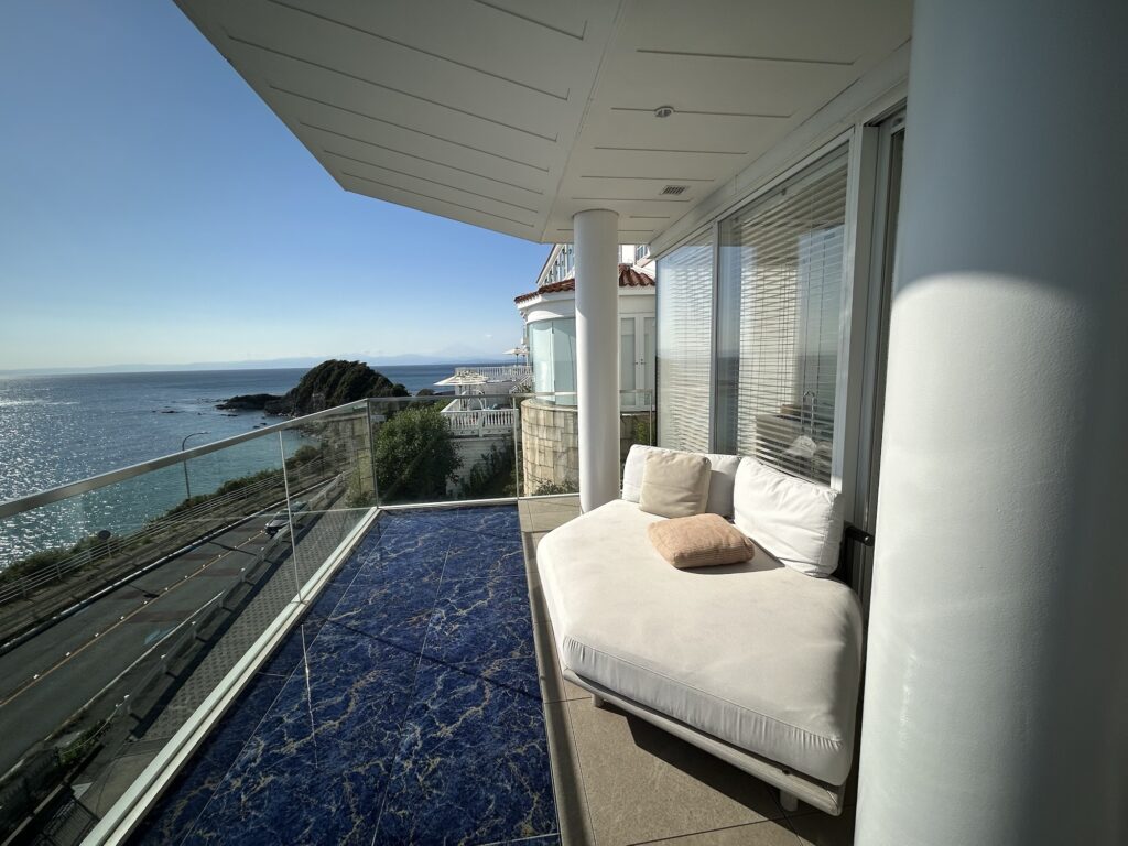 バルコニーは20cmくらいの深さの水盤があり、とてもおしゃれ。ゆっくり寝そべれるソファもある。