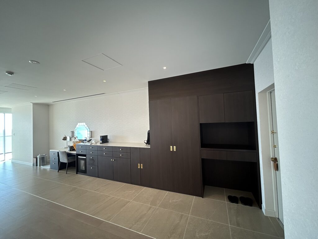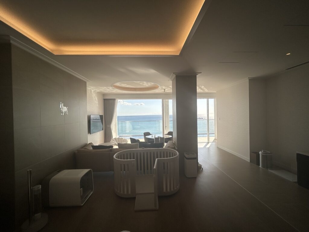 ペットと泊まる場合はペットフレンドリースイート一択となる。室内80平米、バルコニー20平米の広々とした部屋。室内はワンルームになっており、ペットが走り回れるだけの広さがある。