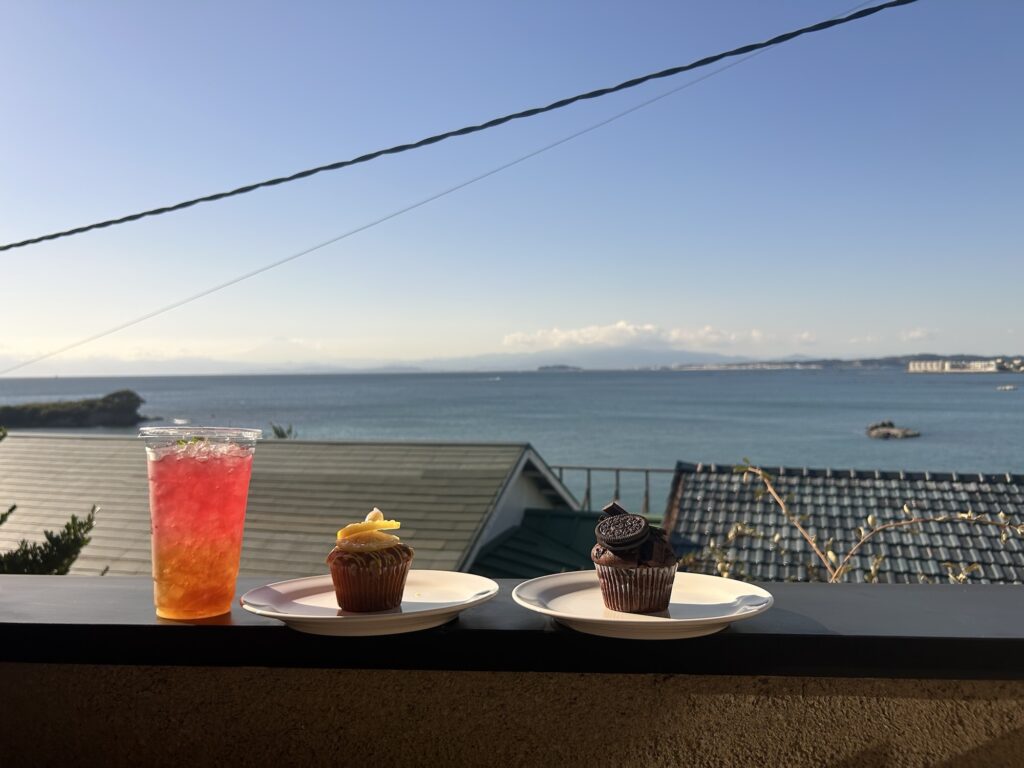 マフィンやドリンクなどをいただけ、海の近くなので気持ちがいい。テラスは4席しかないため、時間帯によってはテラス満席のこともあるかもしれない。
