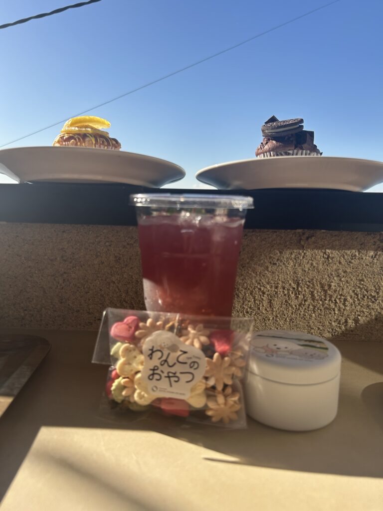 ペットメニューはないが、ワンちゃん用のクッキーがお土産で売っている。思わず買ってしまったが1600円と自分たちの食べ物より高かった…。