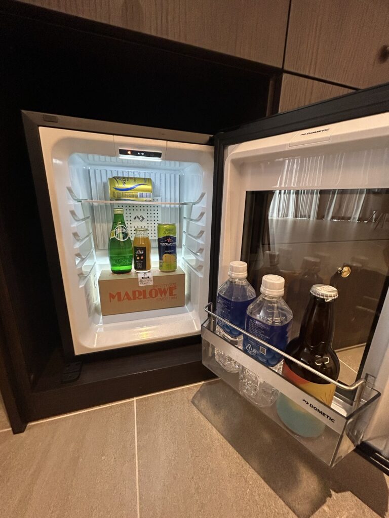 ミニバーは無料でドリンクやビールなど一通り揃っている。コーヒーマシン(illy製)もあり、カプセルは4つ。