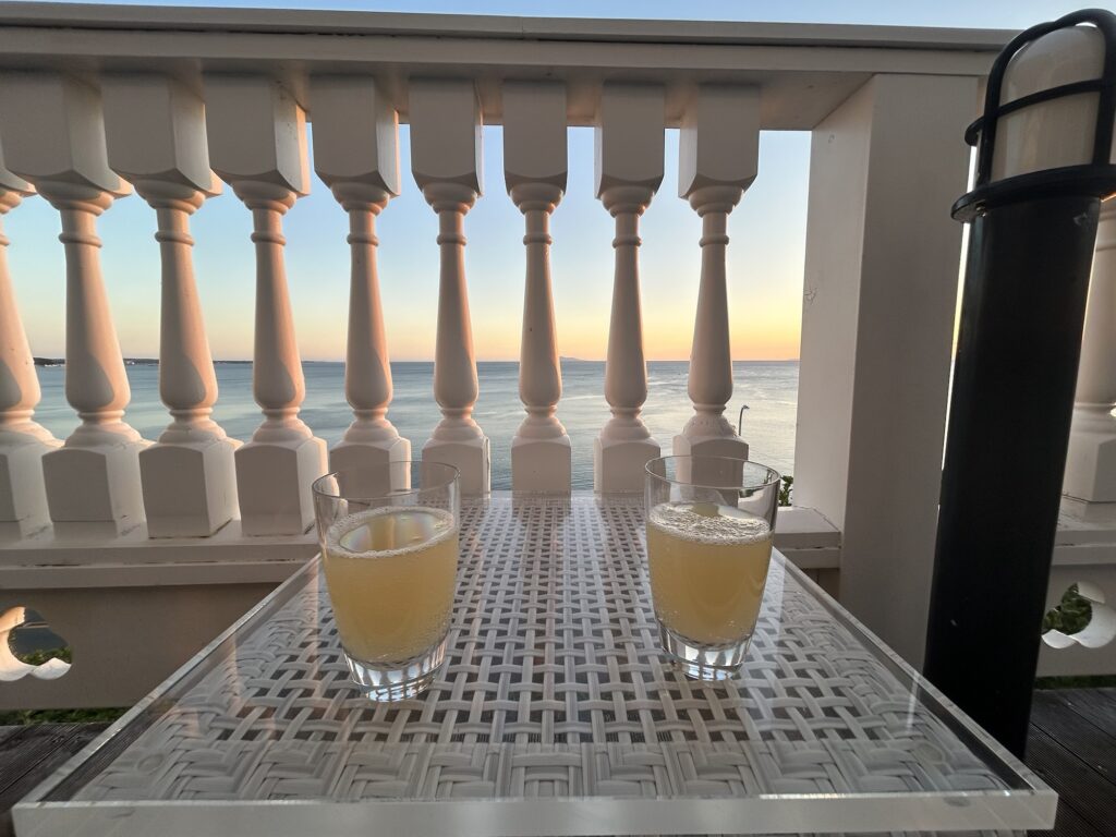 テラスもおしゃれで、無料でアルコール・ドリンクとおつまみをいただける。