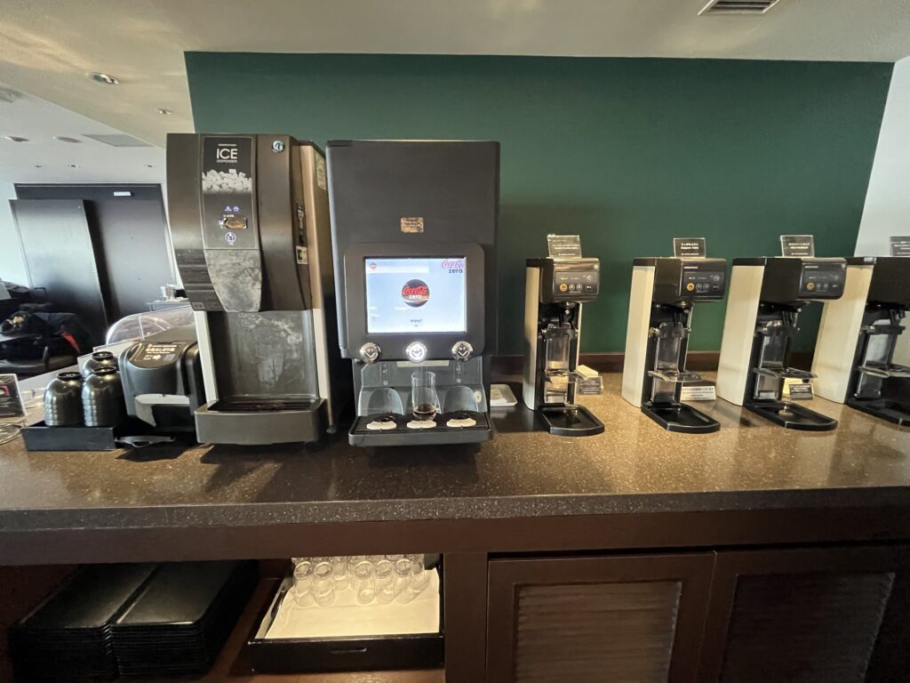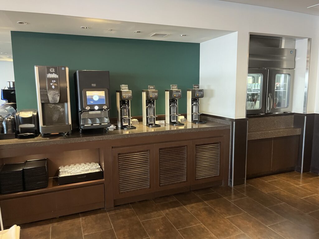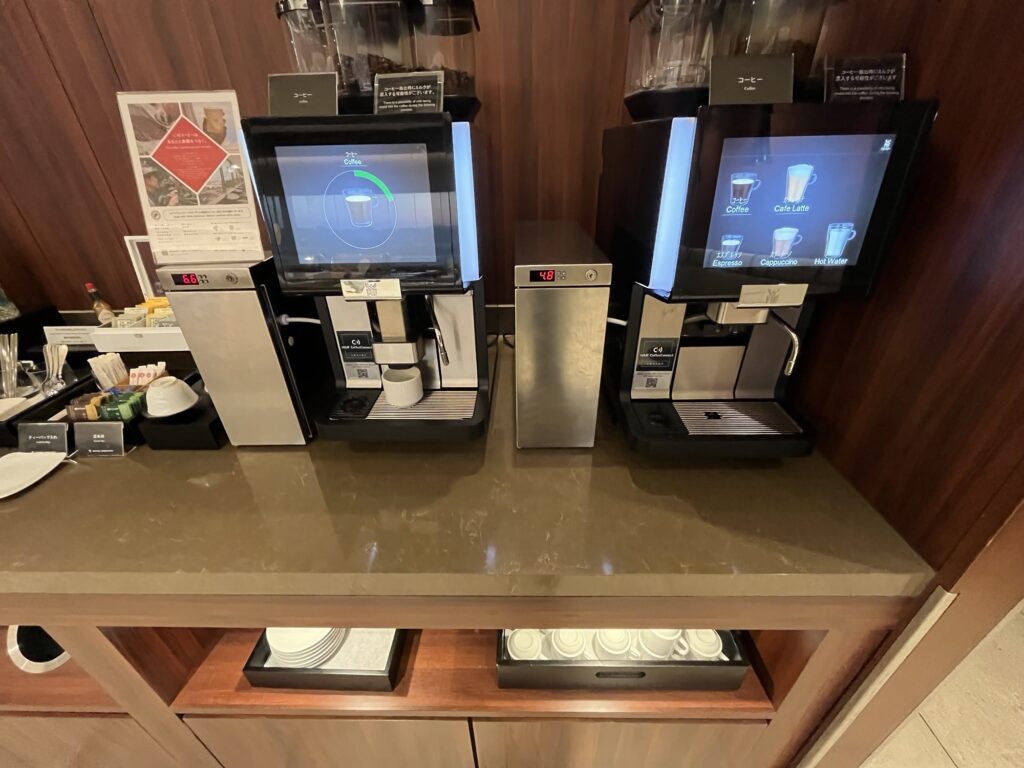 ドリンクはファミレスのドリンクバー的なものとコーヒーマシン、あとはお酒類がある。