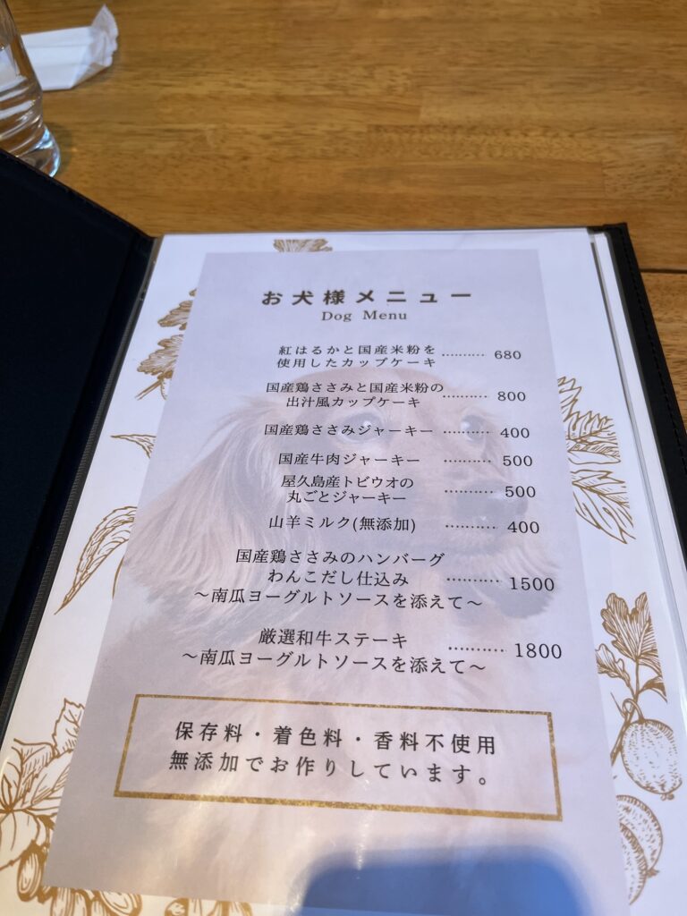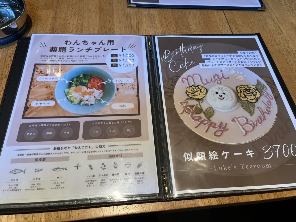 食事はペットメニューが充実しまくっている。お犬様用のメニュー表もあるくらいだ。