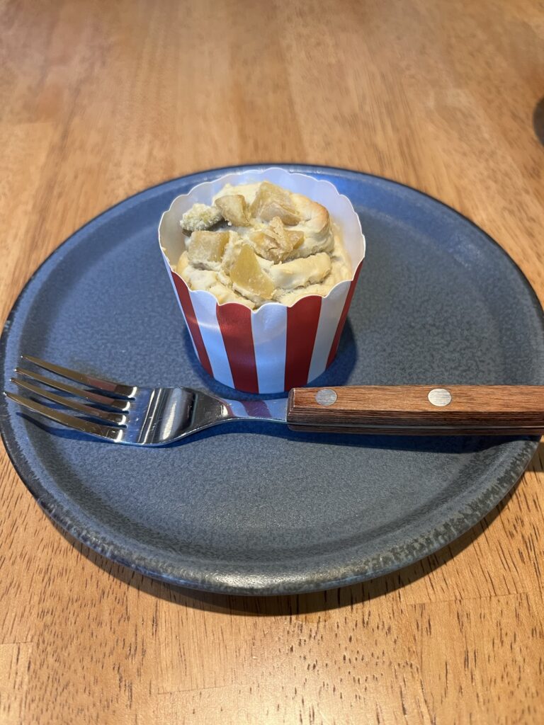 別の日には鶏肉のハンバーグと同じく鶏肉のカップケーキを注文。