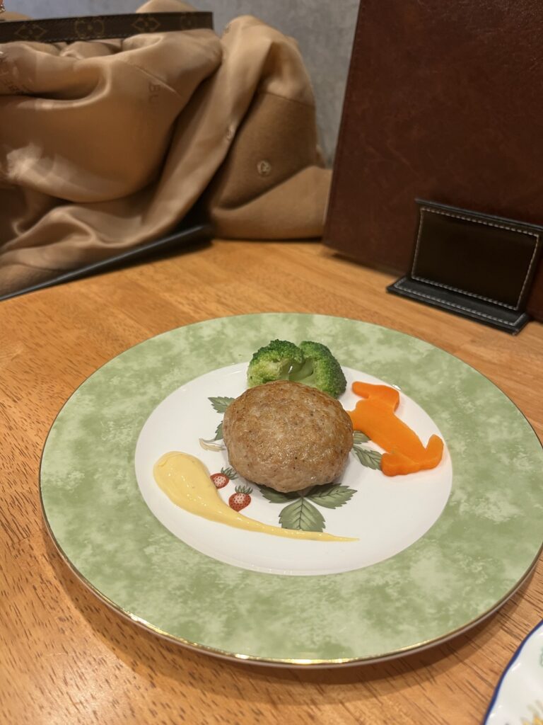 別の日には鶏肉のハンバーグと同じく鶏肉のカップケーキを注文。これも美味しそうに食べてた。