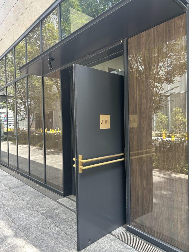 電車が行きやすい。虎ノ門駅の出口(A1)から徒歩数分。目立つ入り口ではないが、扉に【UNIS】と書いてあるのですぐ分かる。