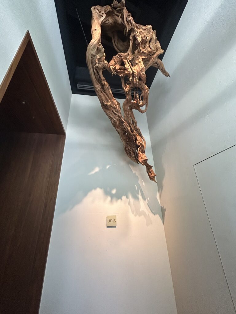 入り口には何か高そうな木が天井に飾ってある。みんな写真撮っていたので自分も撮った。