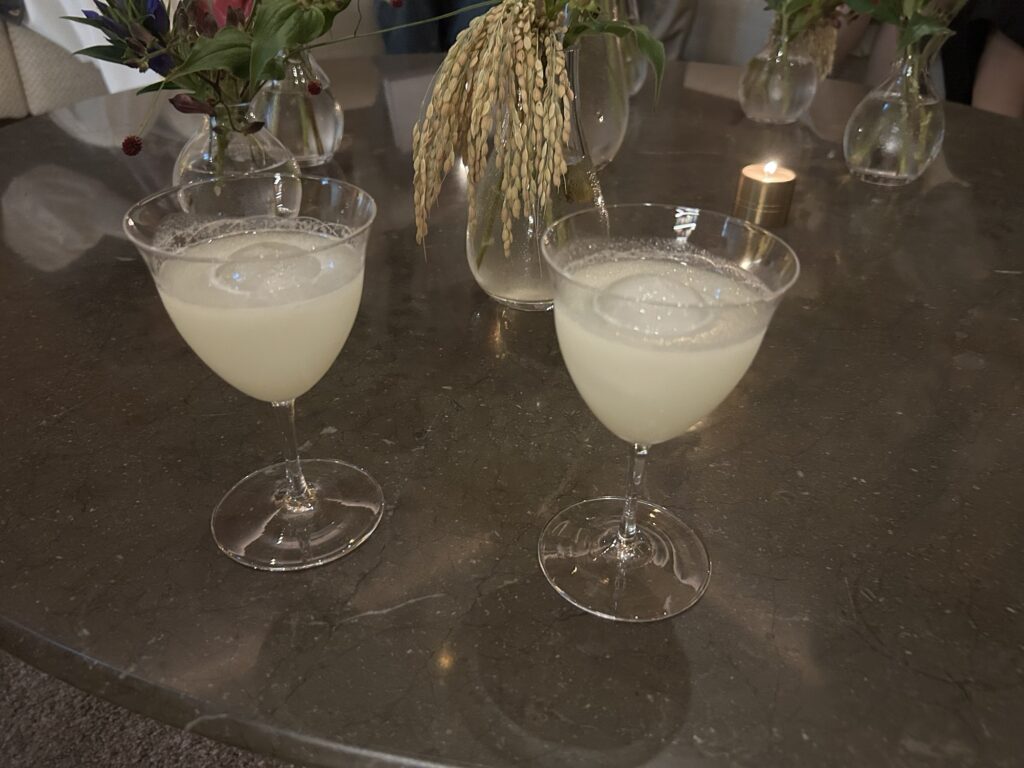 待っている間、ウェルカムドリンクを持ってきてくれる。自分はお酒を飲めないのでノンアルコールをお願いし、梨のジュースを頂いた。