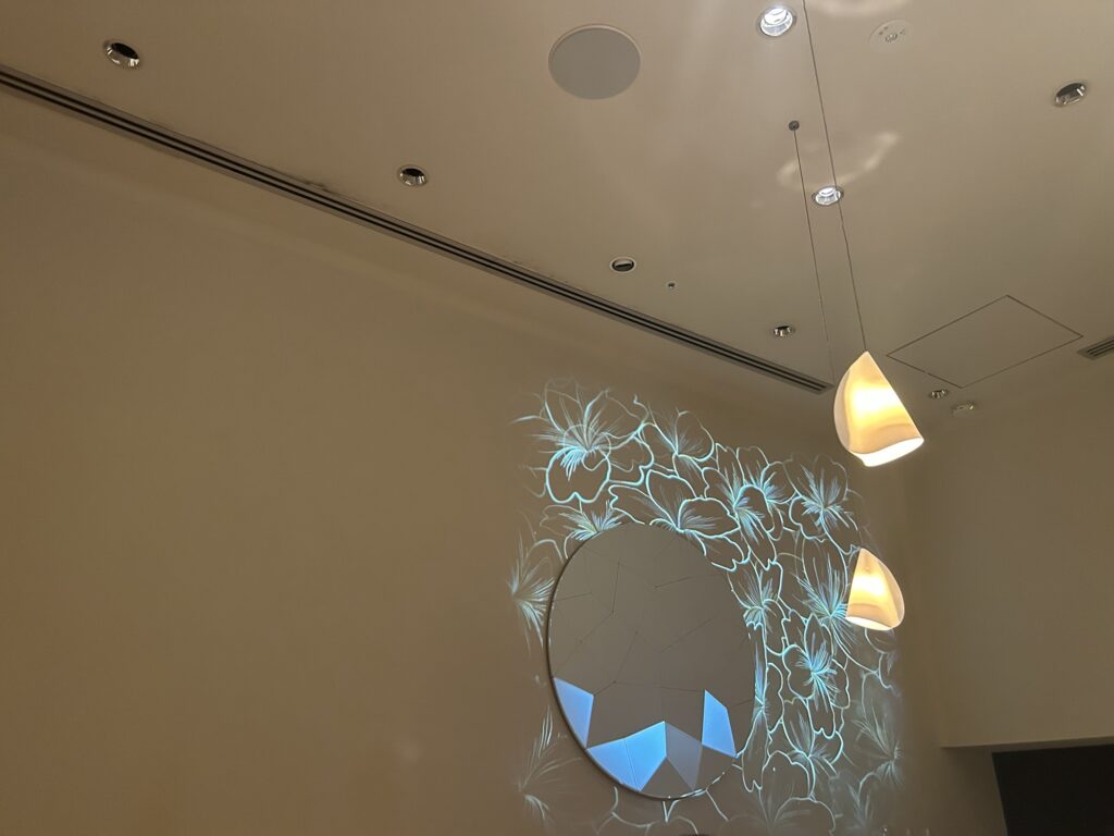 乾杯の時はなんかオシャレな映像が壁にプロジェクションされていた。