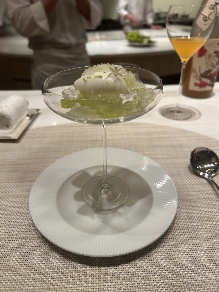 食事に合わせてプロジェクションの画像を変えたり、ペアリングの飲み物も変えてくれ、すごいおもてなし。